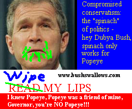 This format was started to cite that liberalism offers only that conservatives concede to it and violates the true meaning of so-called "bipartisanship". This side graphic laughs at the miserable defeat in 1996 of Bob Dole and Jack Kemp suffered at the hands of the Anti-Christ himself: Bill Clinton. They watered down conservatism and got what they deserved! The got DEFEAT! George Bush Sr. was a whimp who compromised on his "Read my lips" promise not to raise taxes. George W. Bush was a whimp who did not reduce one scrap of big government. Today most conservatives are whimps because they learn to COMPROMISE and be in their comfort zones and have gotten so used to liberalism that they have conceded their personal freedoms!